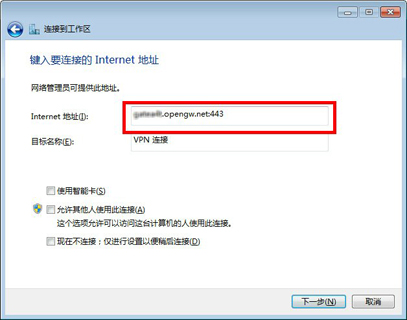 注意: 你必须以 "xxx.opengw.net" (DDNS 主机名称) 指定主机名称。你不能直接指定 IP 地址。如果 SSTP 服务的端口号不是 443 ,你应该附上 ":端口号" 后缀。